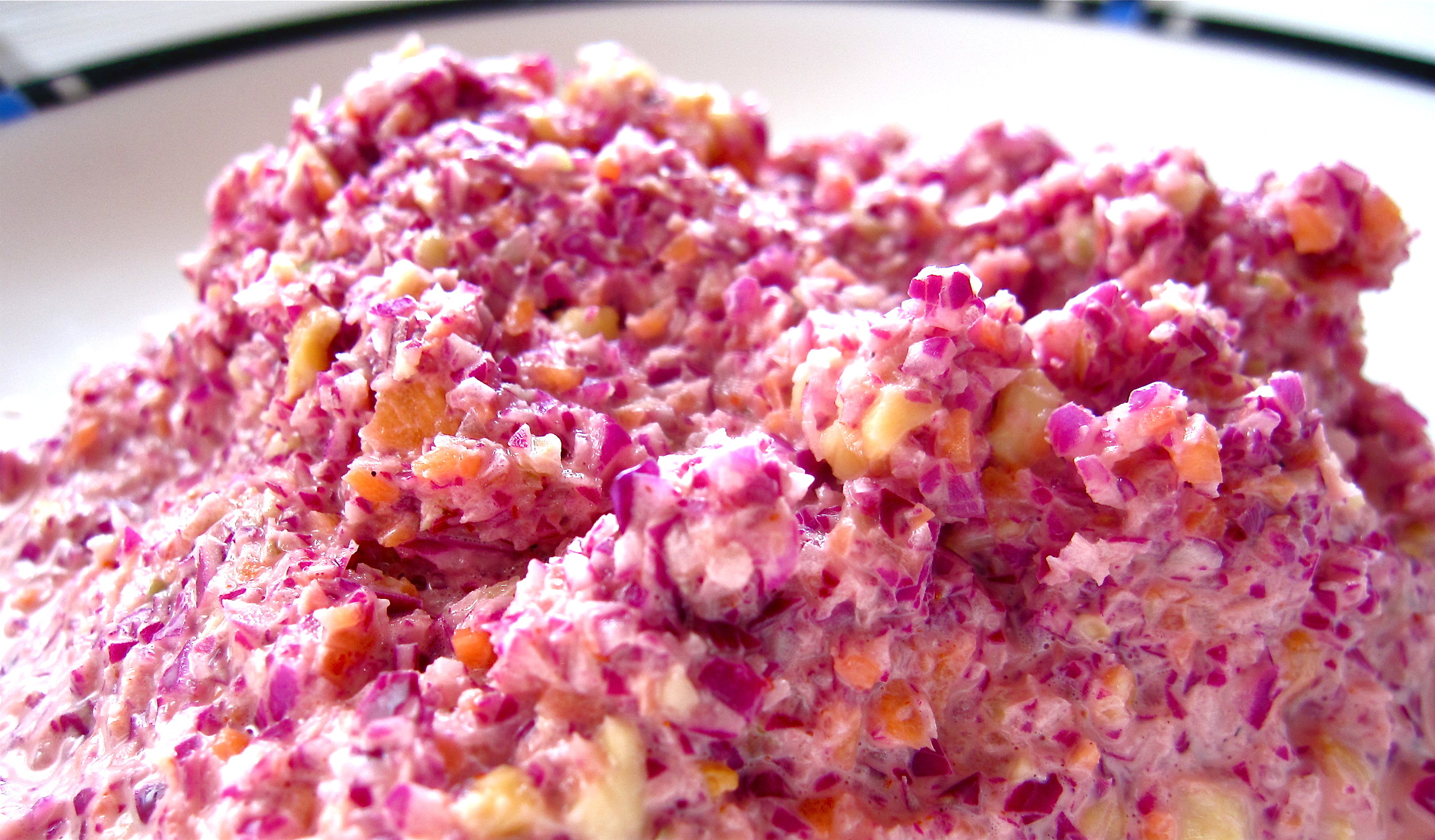 Traditionally, a pulled pork sandwich is enjoyed with only one topping: Coleslaw. While a purist might consider any ingredient other than cabbage and vinegar as superfluous, we like a more complex slaw. The peanuts add a nutty flavor that compliments the pork and the mayo make the slaw a nice, spreadable consistency.